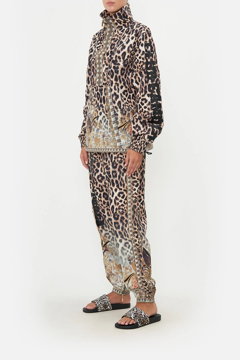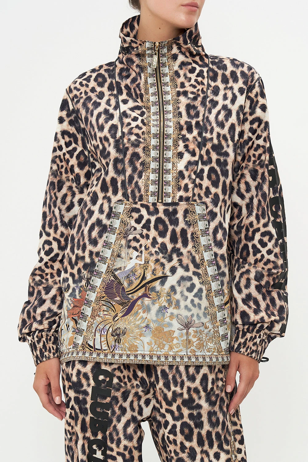 The Nomadic Nymph Half Zip Windbreaker Pullover encapsulates our gaze with a sandy leopard print finished with soft blends of icy blues, vines of golden foliage and birds of ethereality that dance amidst breathtakingly decadent nymphs. Crafted with waterproof technology, this luxury windbreaker plays host to effortless zip front fastening dipped in golden hardware, pocket functionality that falls a drawcord hemline and a relaxed silhouette with elasticated sleeves.