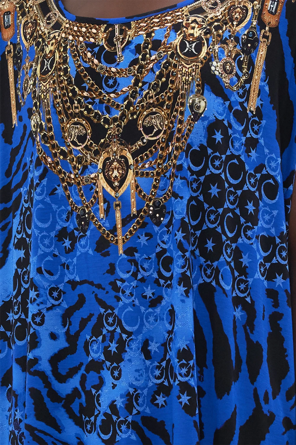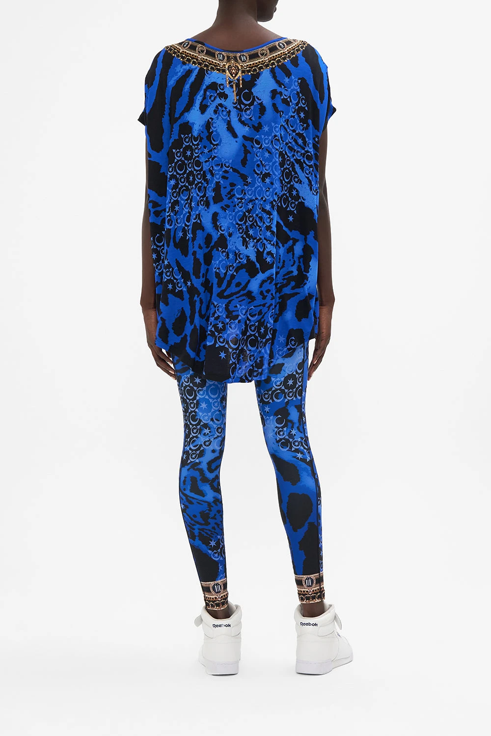 The Cat Got Your Tongue Loose Fit Tee is encased by a symphony of animal print wrapped in the deepest of periwinkle blues, our namesake CAMILLA initalling and star-dipped details. Adorning hand-embellished CAMILLA crystals, this luxury tee plays host to cropped soft sleeves, a relaxed silhouette, a shaped high-low hemline and a rounded neckline.