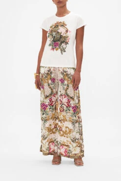 The Bambino Bliss Organic Cotton Slim Fit Tee echoes the sweet symphony pastel pink awashed in opulent florals and a leopard motif. Crafted from breathable cotton, this statement tee is home to a round neckline, CAMILLA crystal embellishments, cropped sleeves. The slightly relaxed slim-fit silhouette features ribbed accents at the neckline. Pair with the Bambino Bliss Straight leg Pant for luxe lounge styling. Lovingly handcrafted, designed in Australia. Explore more from the Amore Mio collection.