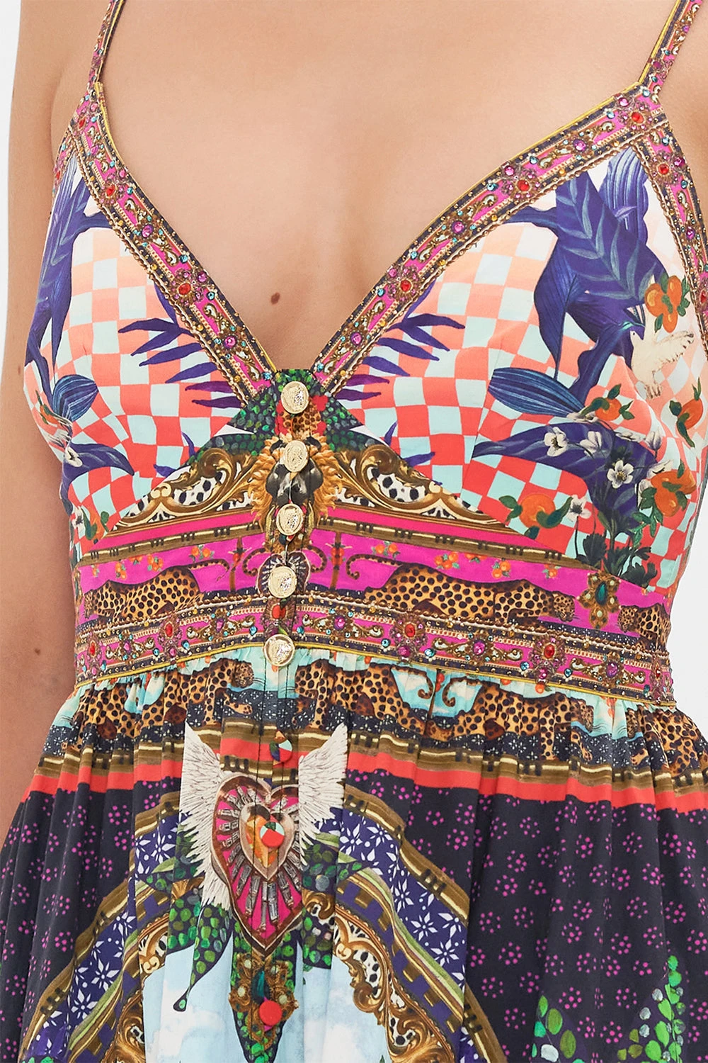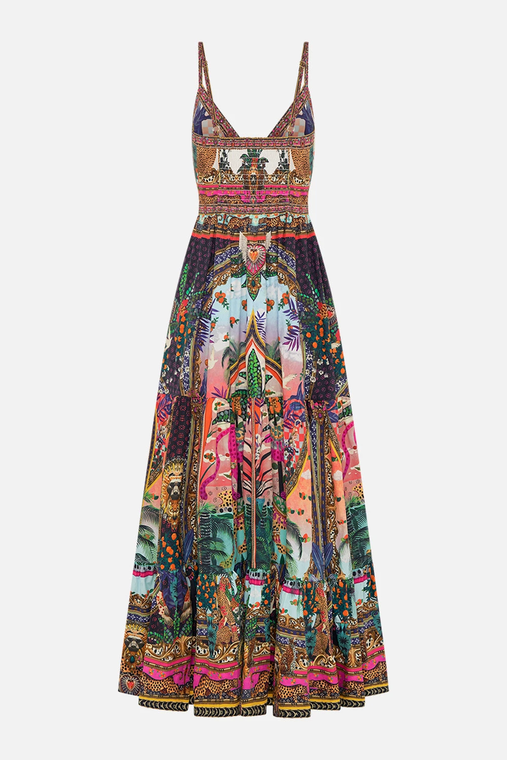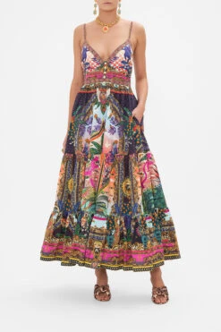 The Alessandro’s Atlantis Organic Cotton Tiered Bodice Dress explores bold depictions of vibrant flora and fauna by artist Alessandro Florio. Artistic love letters to Mother Nature and her wild essence, that become heirloom stories handed down through generations. Crafted from breathable cotton, this luxury dress plays host to a relaxed maxi silhouette that meets a cinched bodice to accentuate the bust and waist, wide statement straps and embellished crystals. A vibrant sundress made for endless summers and exotic adventures. Lovingly handcrafted, designed in Australia. Explore more from the Amore Mio collection.