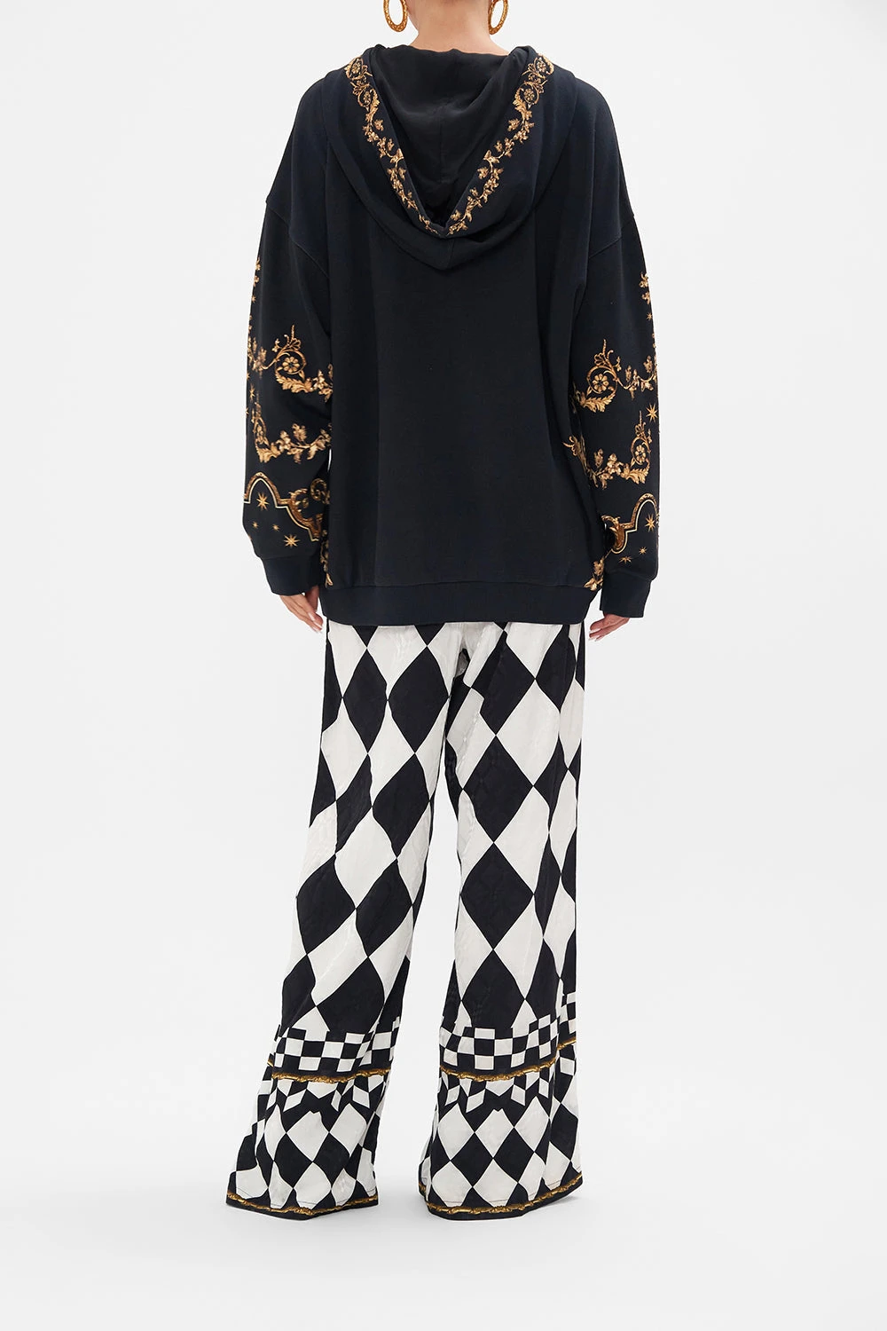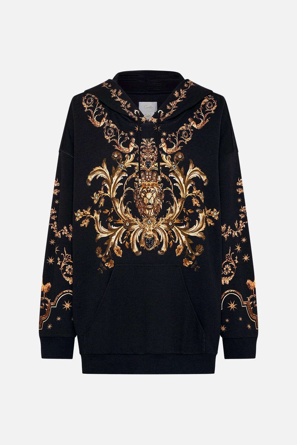 The Duomo Dynasty Oversized Boyfriend Hoodie is a symphony of sculptural palatial curves. A striking mosaic of onyx and gold highlights the glimmering gold charms and royal crests imbued in myth and magic. Adorned with shimmering crystals, this luxury oversized hoodie features a drawstring hood with gold hardware tassels, relaxed fit, and ribbed details at the cuffs and hem. Create a luxe lounge look with the Duomo Dynasty Leggings .Lovingly handcrafted, designed in Australia. Explore more from the Amore Mio collection.