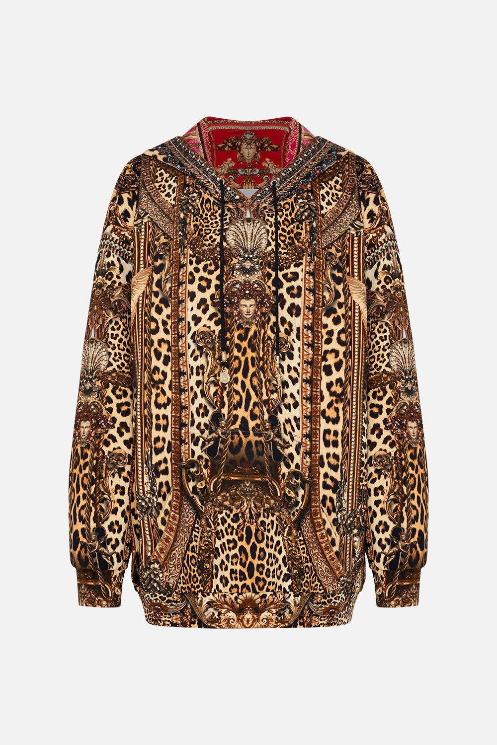 The Standing Ovation Oversized Boyfriend Hoodie captures the unbridle inspirational spirit of the infamous Teatro alla Scala through a rhapsody of rich leopard print. Adorned with shimmering crystals, this luxury cotton hoodie features a relaxed oversized silhouette, a drawstring hoodie, front pocket functionality and ribbed details at the cuffs and hem. Pair with the Standing Ovation Leggings for luxe lounge styling. Lovingly handcrafted, designed in Australia. Explore more from the Amore Mio collection.