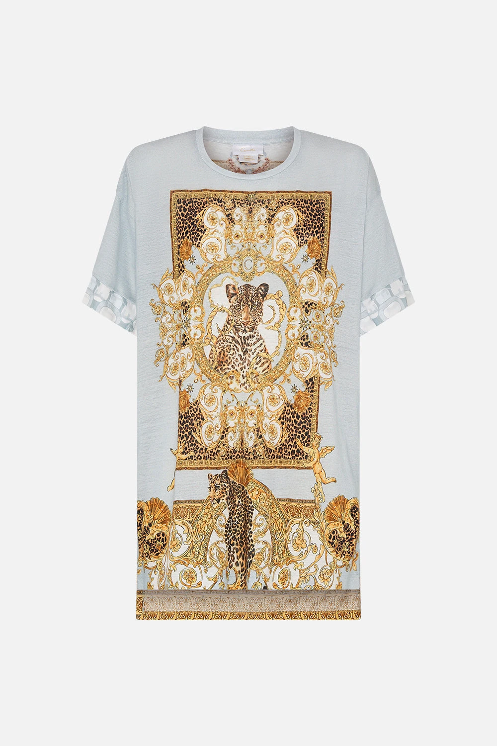 The Palazzo Pride Panelled Side Split Tee delves into a realm of leopards resting regally amongst luxuriously palatial golden flourishes. Adorning CAMILLA crystals, this luxury knit top features a relaxed longline silhouette, a chic round neckline, statement batwing sleeves and a high-low hemline. For elevated everyday wear pair with the Palazzo Pride Leggings. Lovingly handcrafted, designed in Australia. Explore more from the Amore Mio collection.
