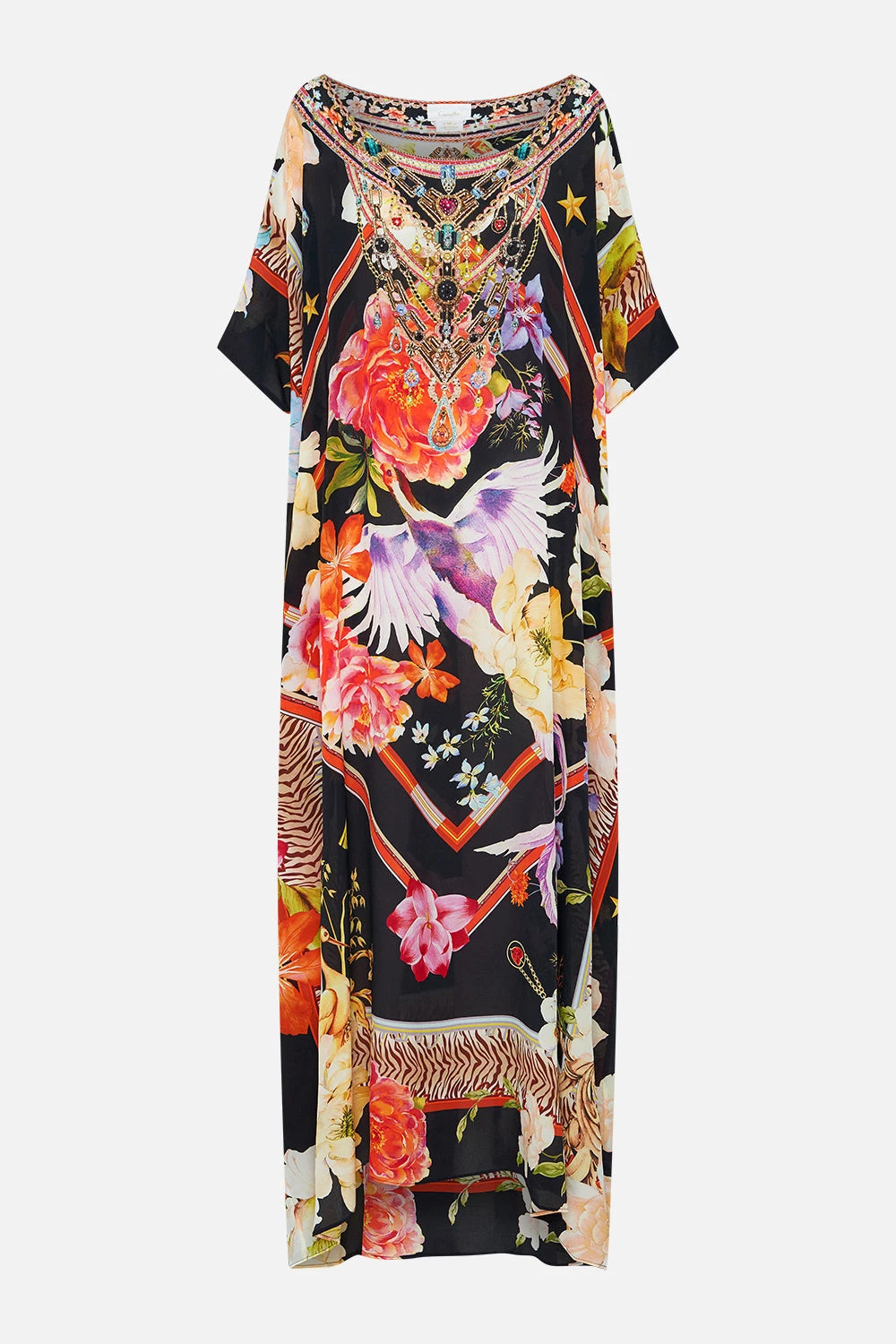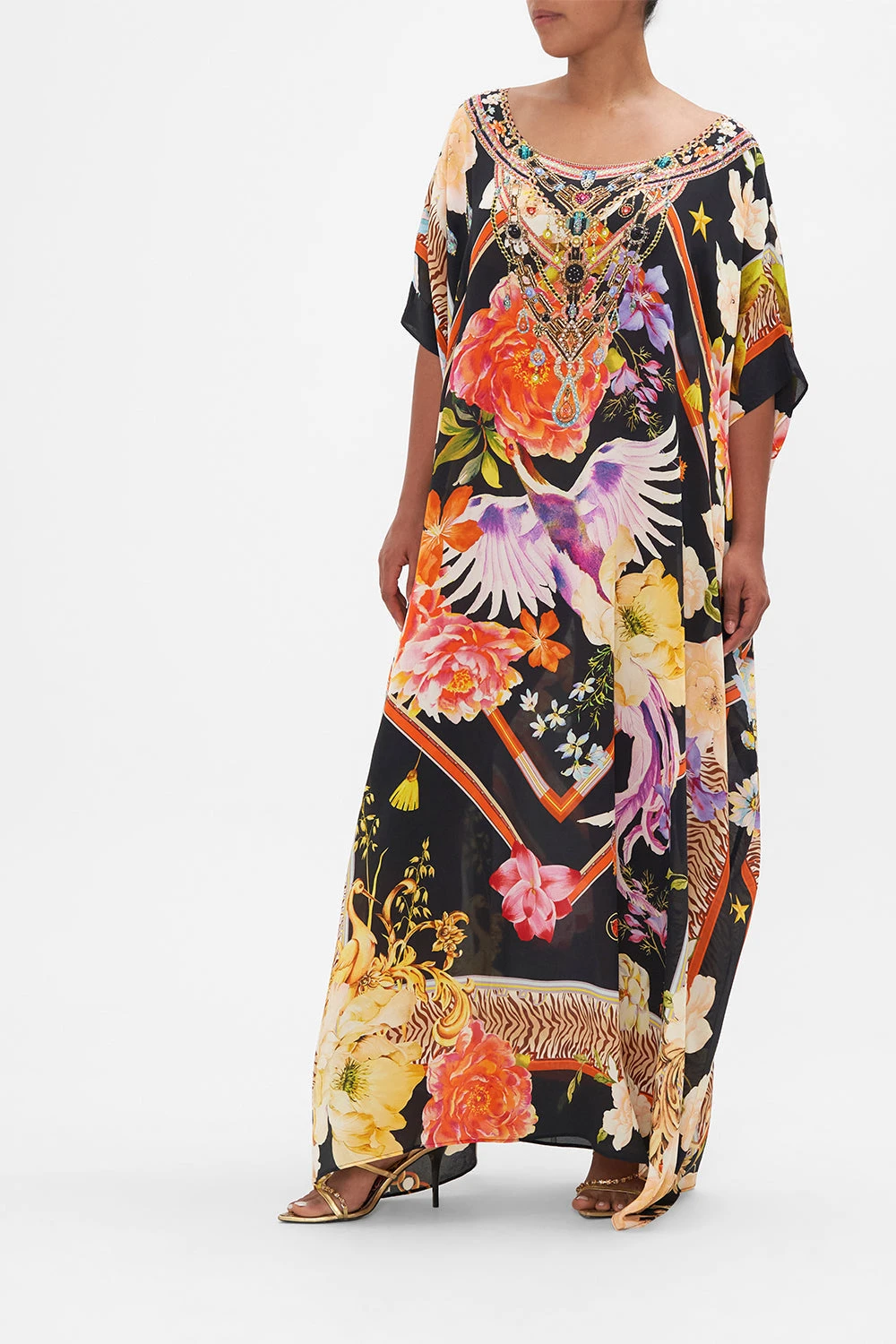 The Secret History Round Neck Kaftan is set in a garden of rich imperial florals imbued with precious hidden gems . Adorned with hand-embellished crystals, this luxury silk kaftan is home to a generous rounded neckline, cropped sleeves and a relaxed maxi silhouette. Explore our style guide to discover all the ways to wear this perennially perfect CAMILLA wardrobe staple. Lovingly handcrafted and designed in Australia, explore more from The Moral Of The Story: Act II collection.
