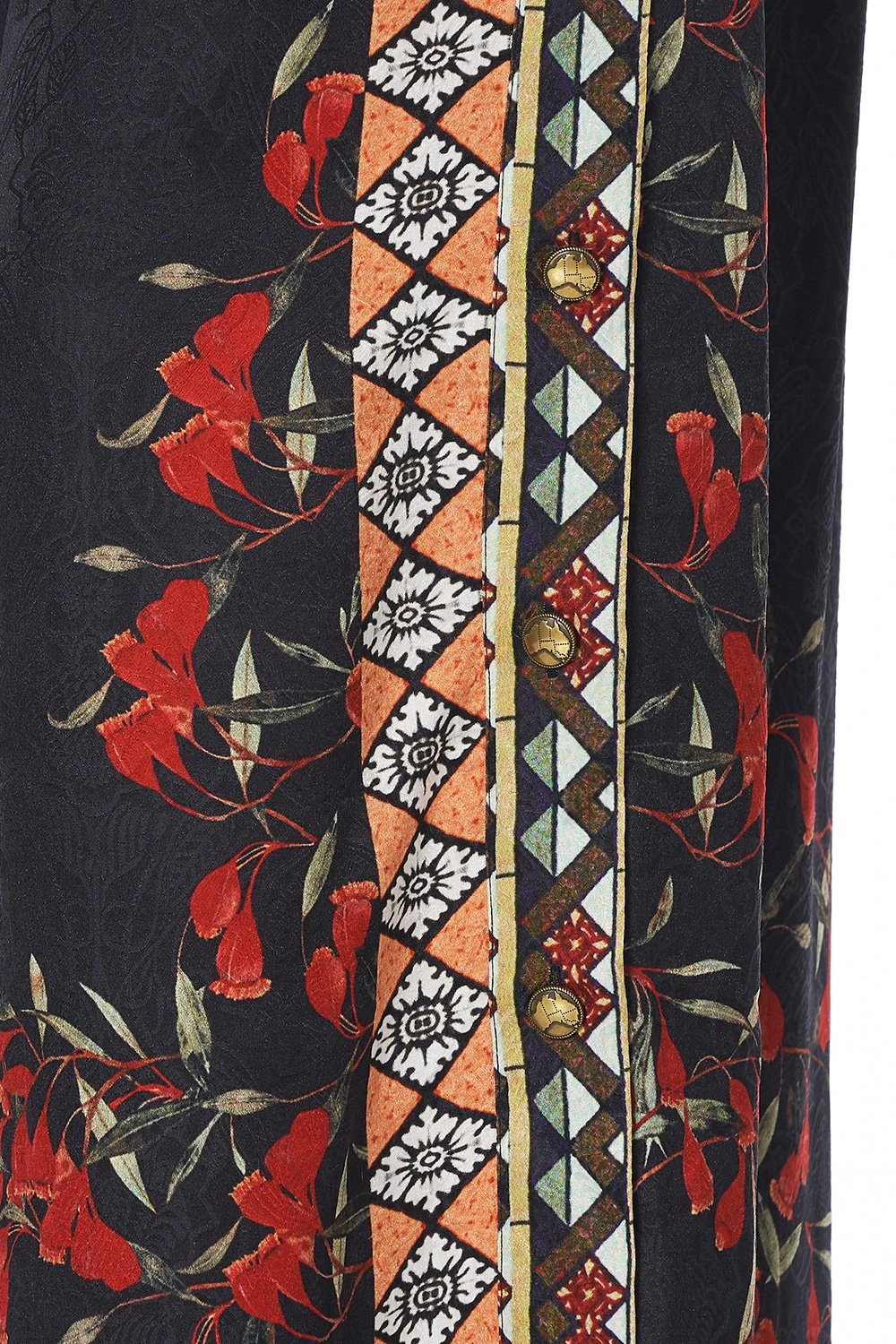 With Federation tile work and the aged upholstered chairs that line historic town halls as joyous inspiration, the Paved In Paisley Side Button Up Pant oozes luxury. With golden flourishes and crimson pops, these silk trousers feature flattering button through side panels, a comfortable elasticated back waist, loose flare leg, as well as digitally printed silk.