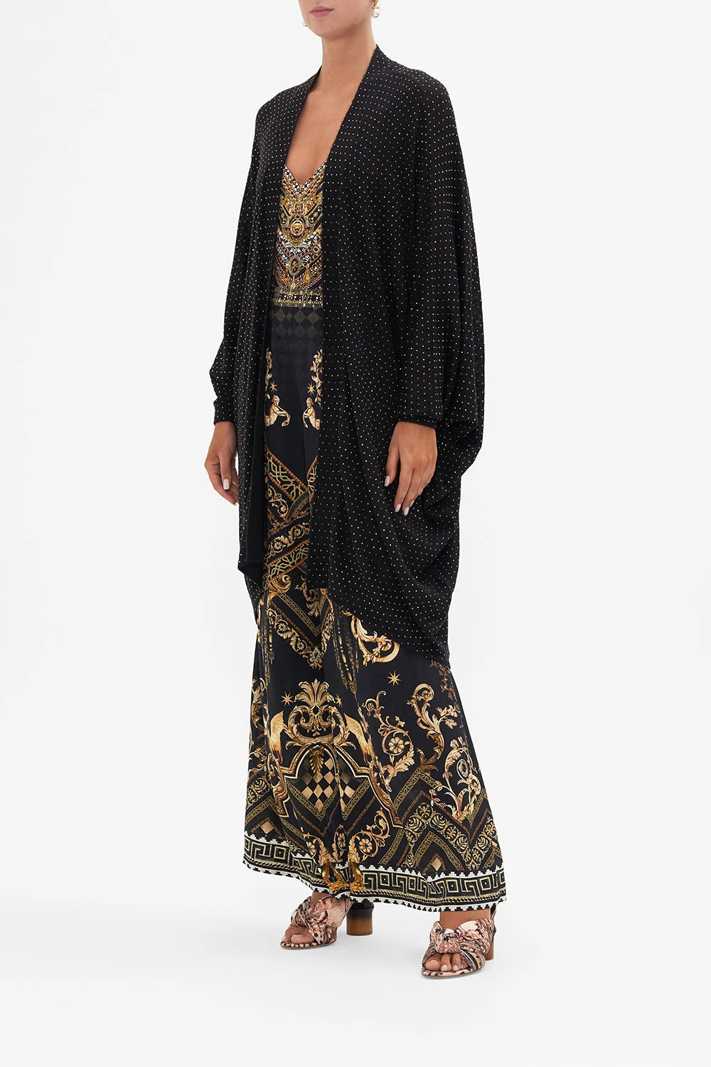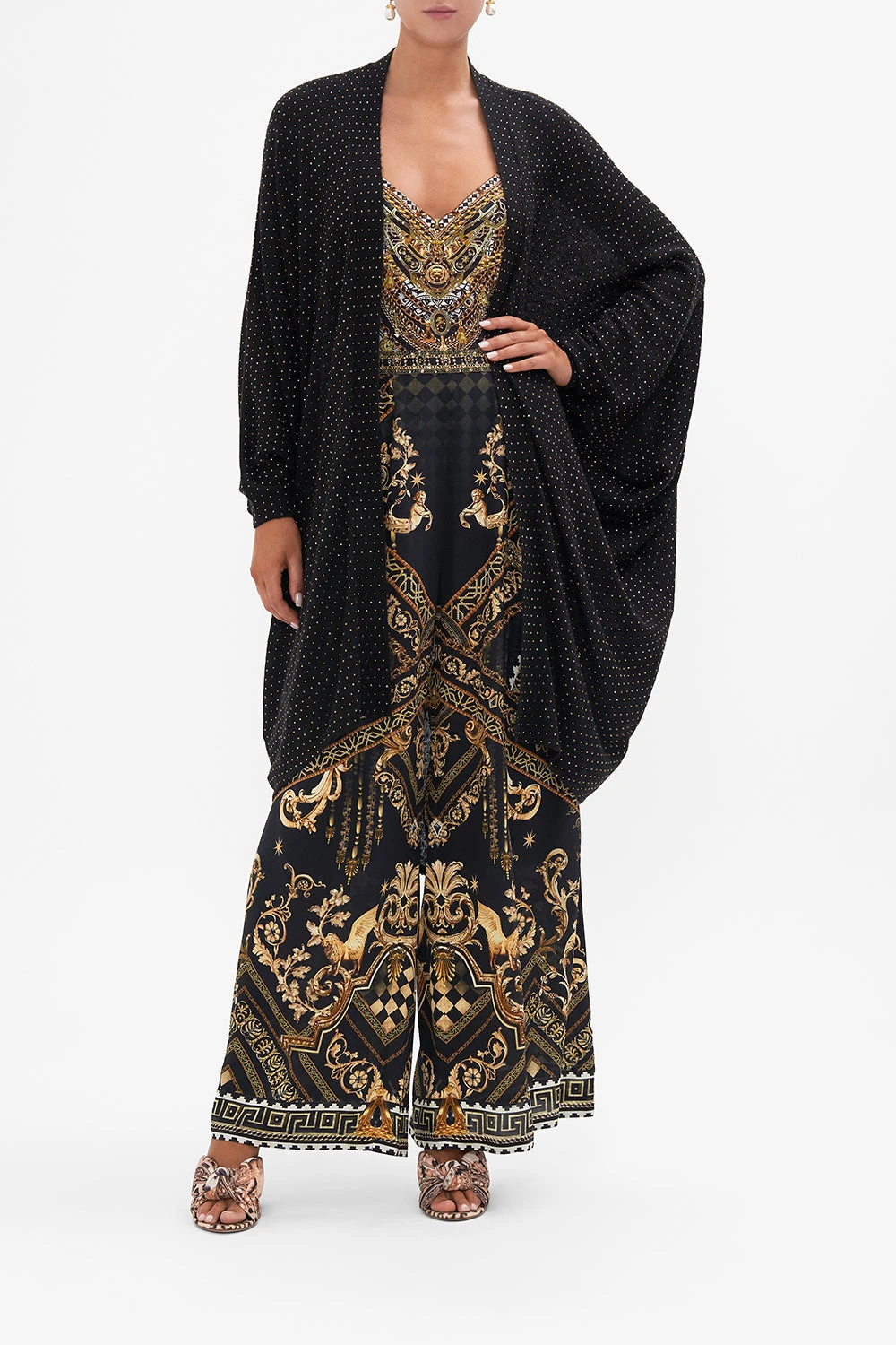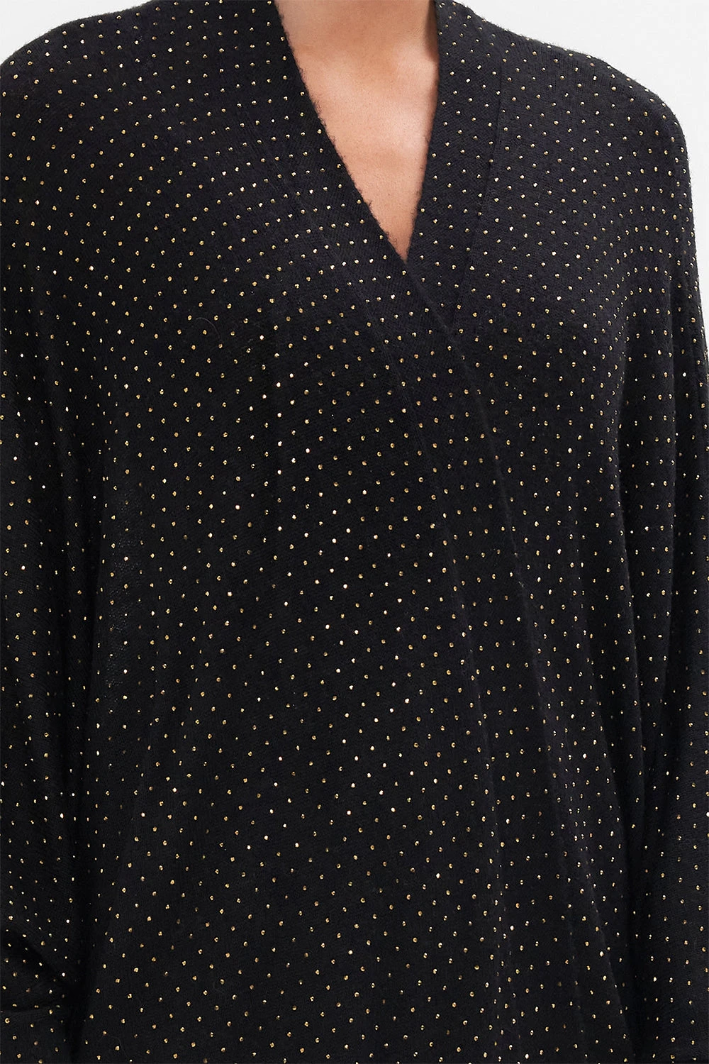 The Duomo Dynasty Soft Knit Layer is a symphony of sparkles against a rich black backdrop. A luxury winter layering knit featuring all over CAMILLA crystals, shaped hemline, long sleeves and a relaxed silhouette. Wear as an opulent evening layer over dresses or create a luxe lounge look with the Duomo Destiny Legging. Lovingly handcrafted, designed in Australia. Explore more from the Amore Mio collection.