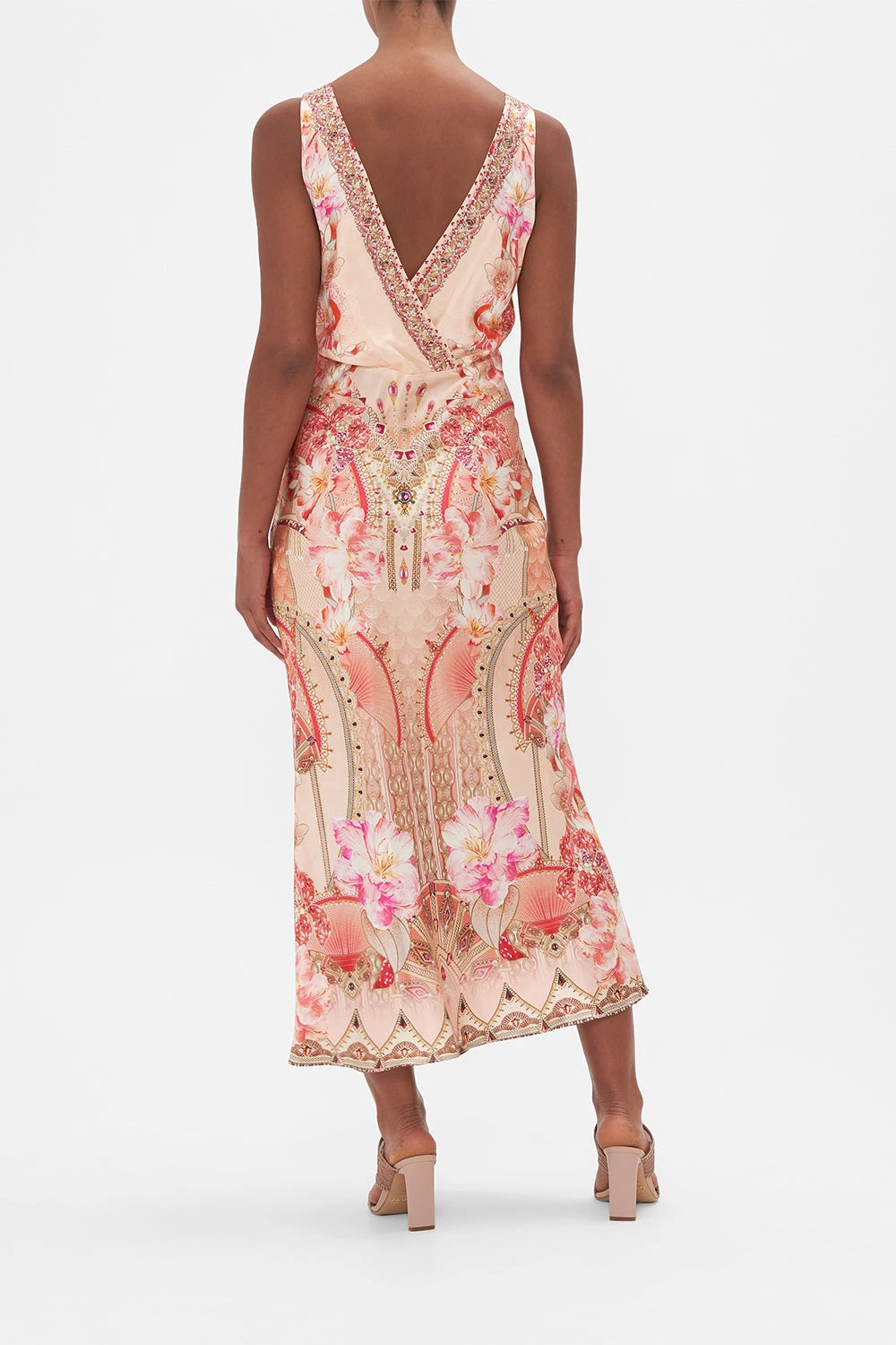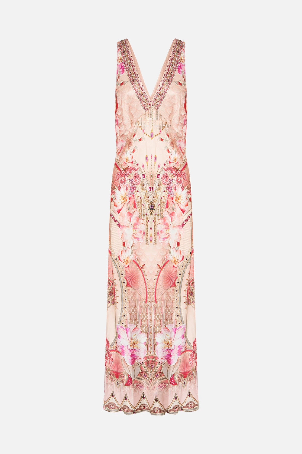 The Adore Me V Neck Slip Dress embodies an arrangement of soft pink blooms set against delicate unfurling fans of pretty pearls and sparkling jewels. Designed for timeless elegance, this luxury silk slip dress plays host to a timeless v neckline adorned in signature CAMILLA hand-embellished crystals, invisible zip fastening for effortless enclosure and a panelled bodice detail for ultimate fit perfection. Lovingly handcrafted and designed in Australia, explore more from The Moral Of The Story: Act II collection.