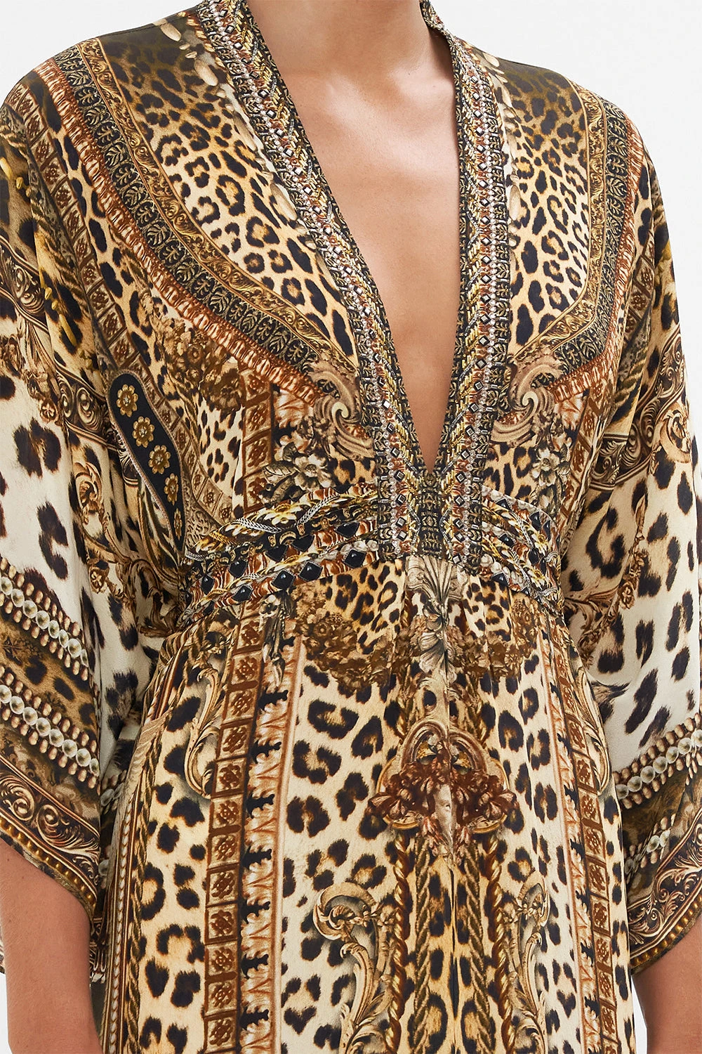 The Standing Ovation Waist Tie Long Kaftan captures the unbridle inspirational spirit of the infamous Teatro alla Scala through a rhapsody of rich leopard print. Crafted from the softness of silk, this luxury CAMILLA kaftan is home to a relaxed longline silhouette that billows off the body, a deep v neckline that scintillates with shimmering crystals and chic back waist tie details. Wear as a striking resort wear dress or elevate as a formal dress for more sophisticated soirees. Lovingly handcrafted, designed in Australia. Explore more from the Amore Mio collection.