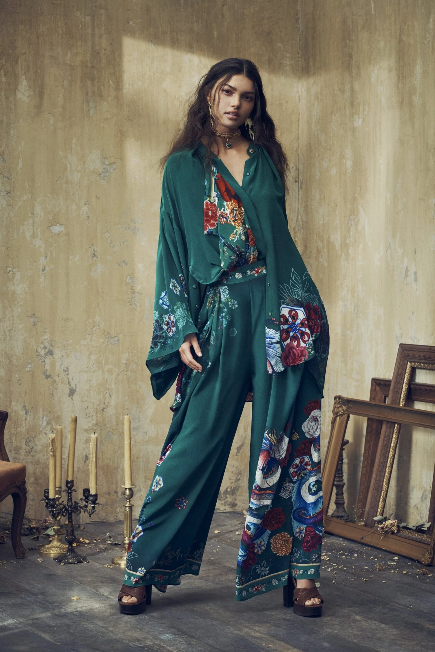 A retro statement trouser with bohemian finishes, the Emerald’s Orbit Wide Leg Pant with Gathered Pockets are soft suiting luxe. Crafted in a whimsical CAMILLA print inspired by studies of Chinese florals, motifs and dragons – these 70s style trousers feature flared legs, a comfortable elasticated waist for free movement and statement gathered front pockets. We love to pair these trousers back with the Emerald’s Orbit T Back Shoestring Top for a head-to-toe boho look.