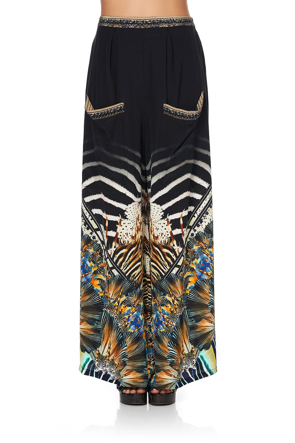 Accents of large feature side pockets and shirred elastic waistband provide luxurious silky comfort whilst hand placed crystal embellishments add the statement CAMILLA touch to this effortless high waisted silhouette.
