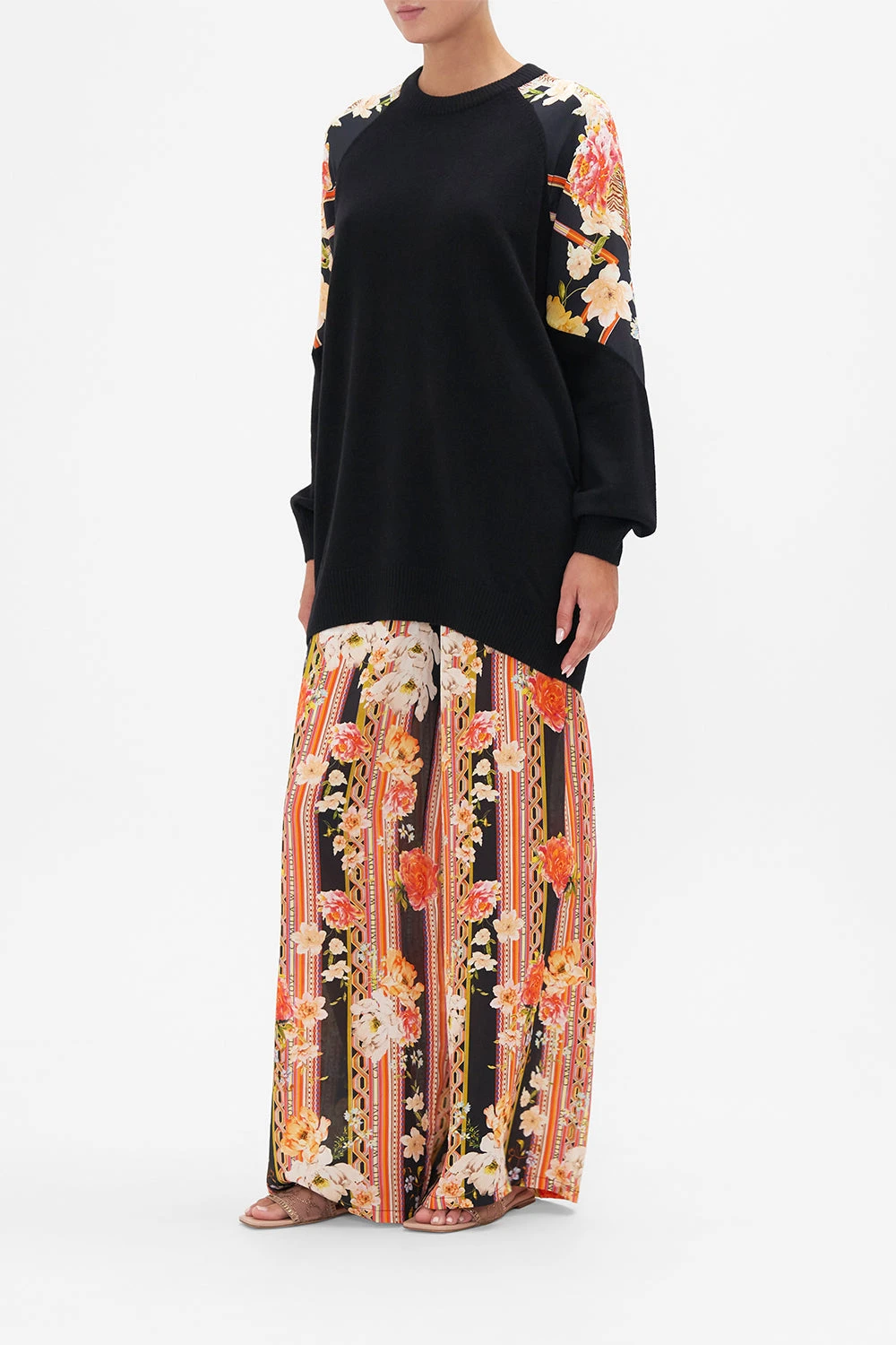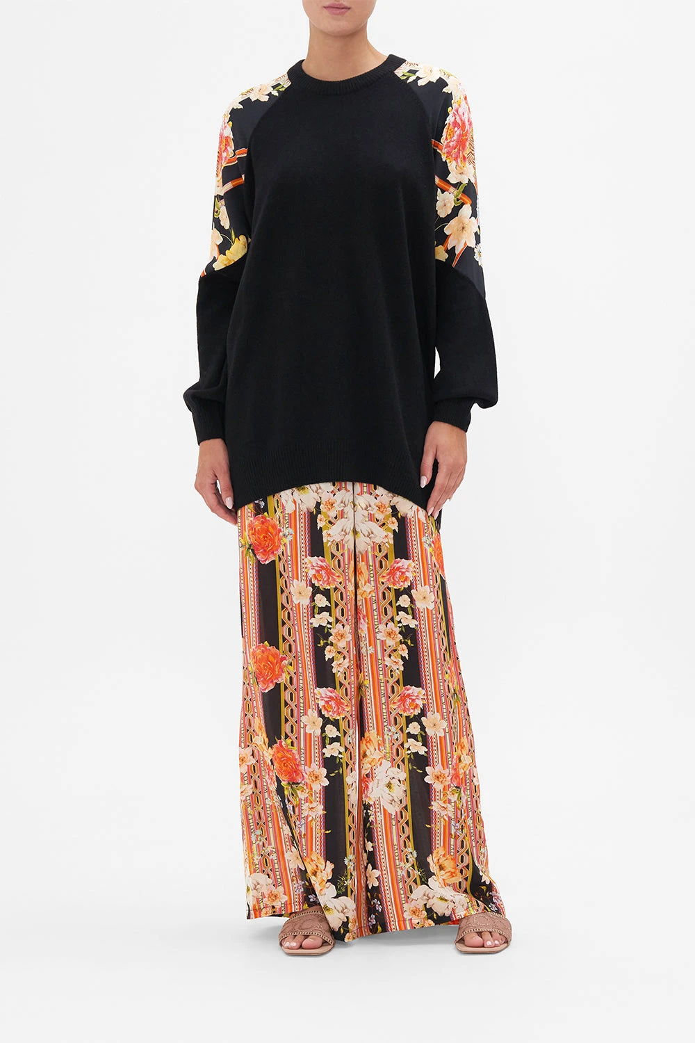 The Secret History Wool Cashmere Blend Spliced Shoulder Jumper is set in a garden of rich imperial florals imbued with precious hidden gems. Crafted from premium merino wool and cashmere blend, this luxury layering piece features a classic crew neckline, knitted sleeves spliced back with a silk printed panels for a lavishly relaxed fit silhouette. Lovingly handcrafted and designed in Australia, explore more from The Moral Of The Story: Act II collection.